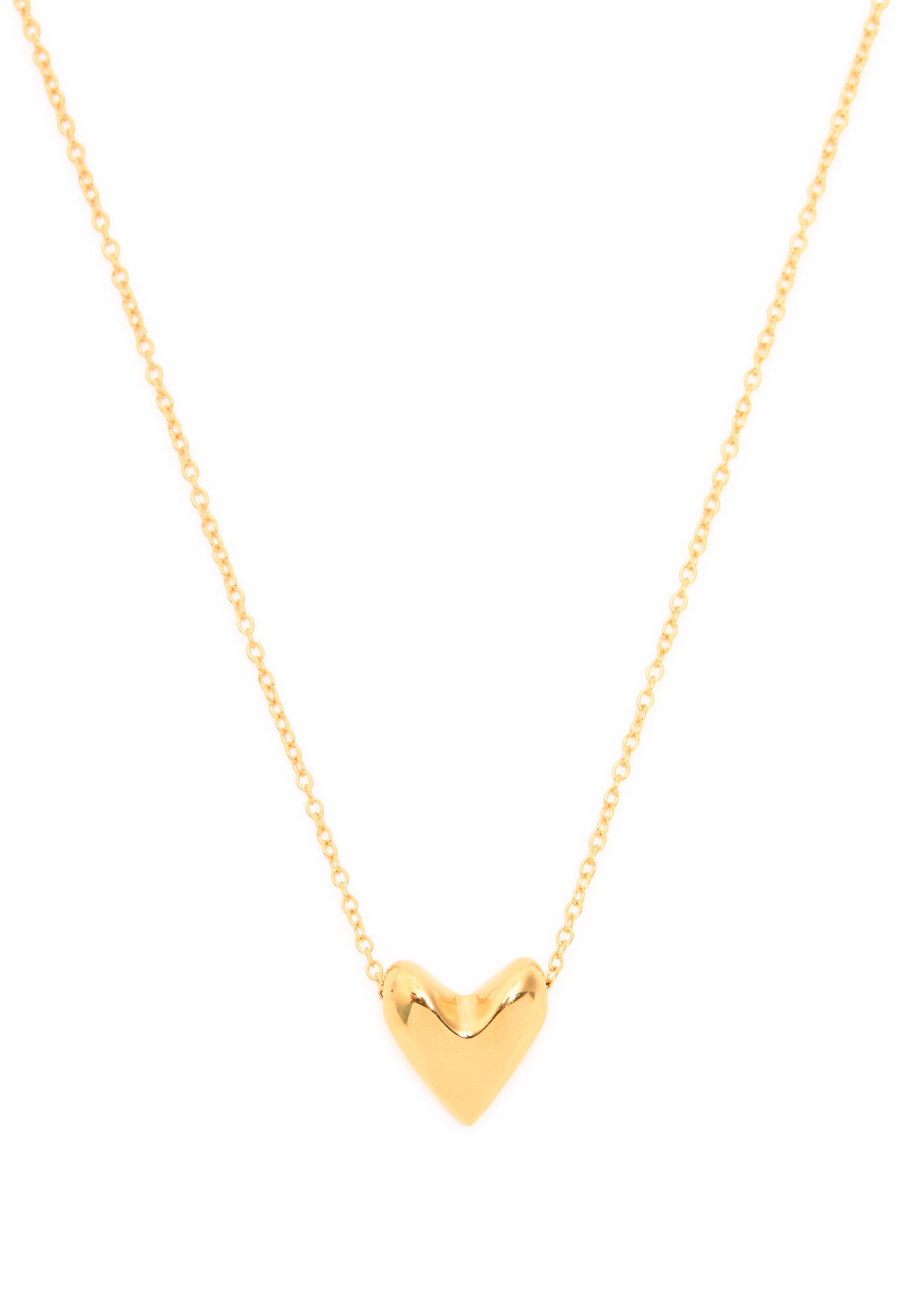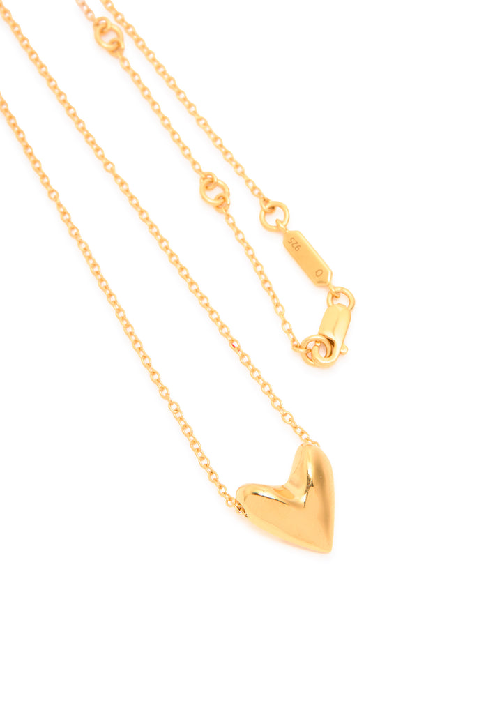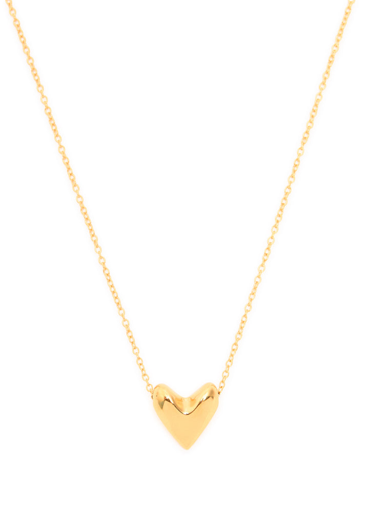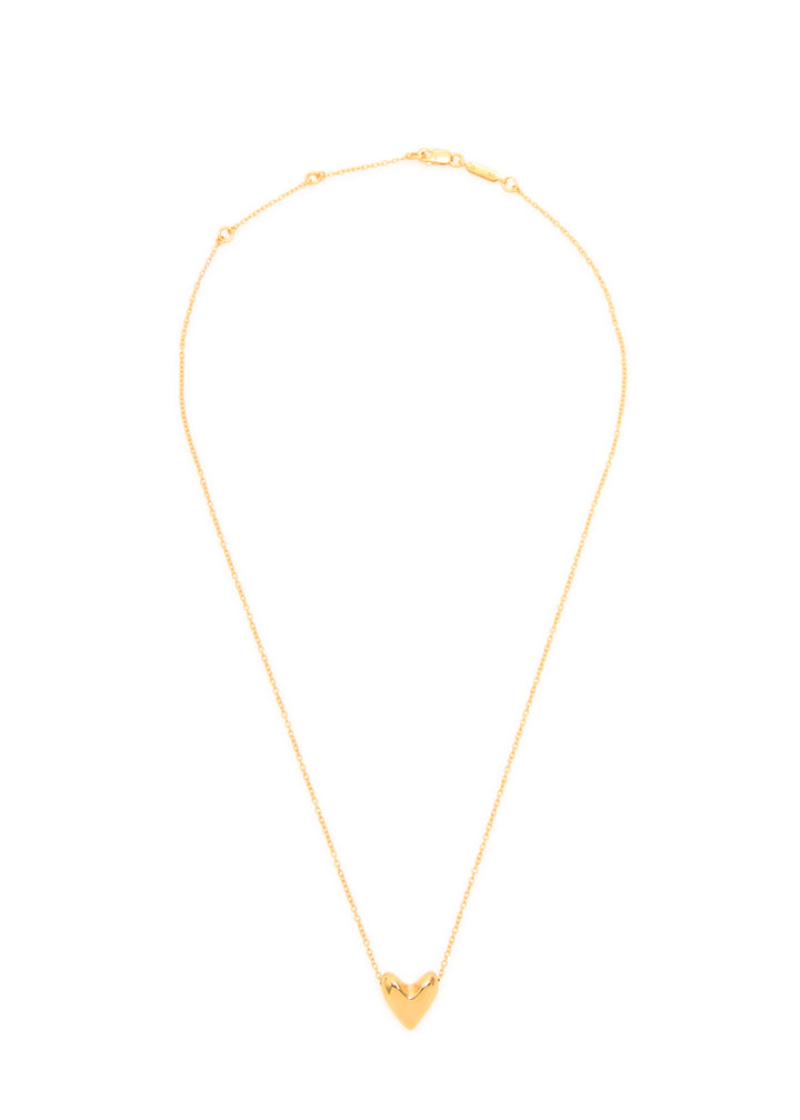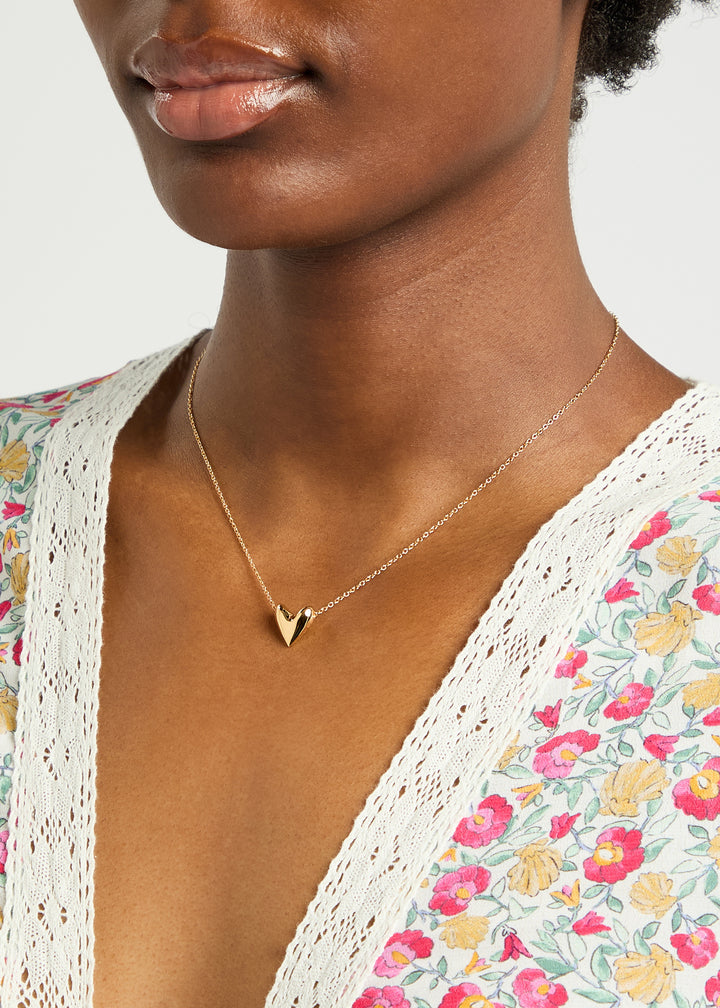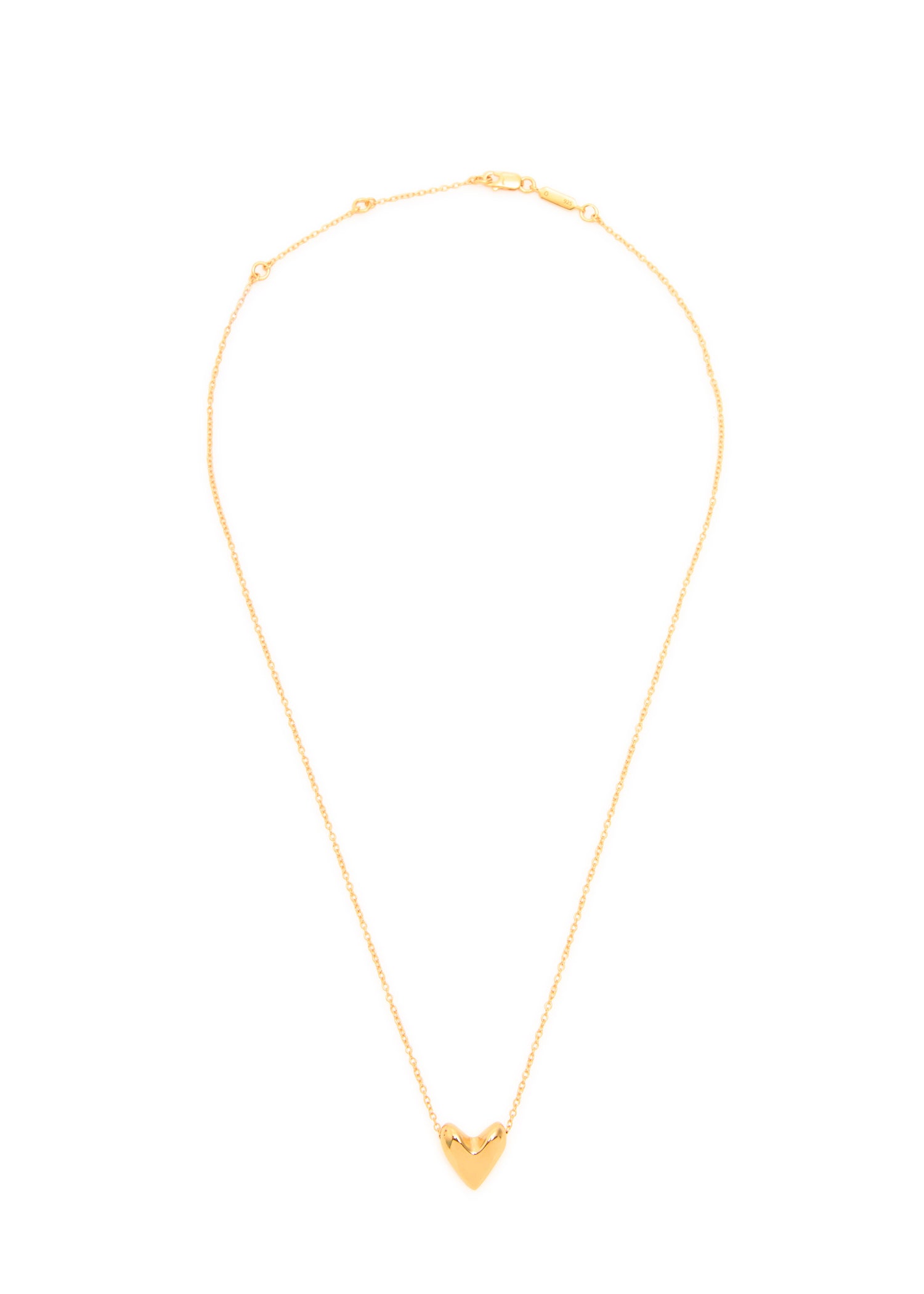 This necklace is crafted from 14kt gold vermeil with a sculpted heart pendant. The length is 42.5cm, the pendant measures 1.2cm x 1.3cm, and it is secured with an adjustable lobster-clasp fastening. It is presented in a designer-stamped box.