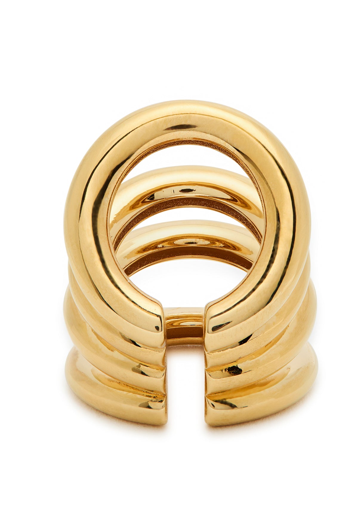 This Layered ear cuff by Rabanne is a modern and architectural accessory. The ear cuff features a layered design, which creates a sense of unique dimension and elegant artistry. It's a perfect piece for adding a touch of edgy, contemporary flair without needing a piercing. It symbolizes a love for innovative and architectural jewelry.