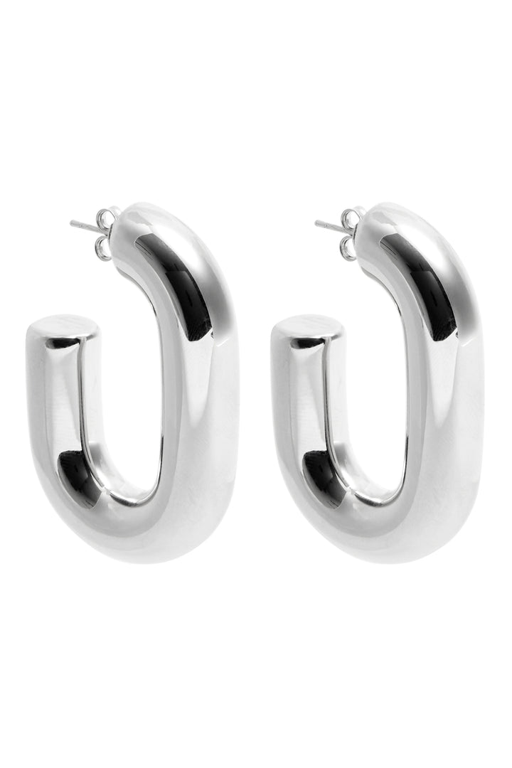 These XL Link hoop earrings by Rabanne are a bold and iconic statement. The large hoops feature a chunky, sculptural design, creating a powerful and modern look. These earrings are perfect for those who want to add a touch of architectural elegance and confident style to their ensemble. They symbolize a love for powerful simplicity and refined design.