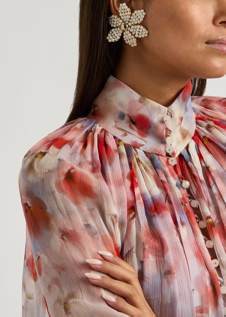 These Gardenia faux-pearl beaded clip-on earrings by Rosantica are a beautiful tribute to nature-inspired design and graceful elegance. The earrings are handmade with a delicate floral design and feature a stunning display of faux pearls, creating a sense of serene, free-spirited beauty. They're perfect for adding a touch of sophisticated charm and unique artistry to your look without the need for piercings.