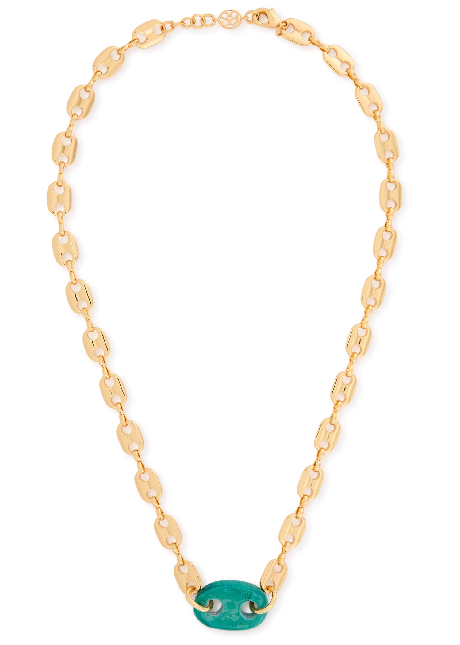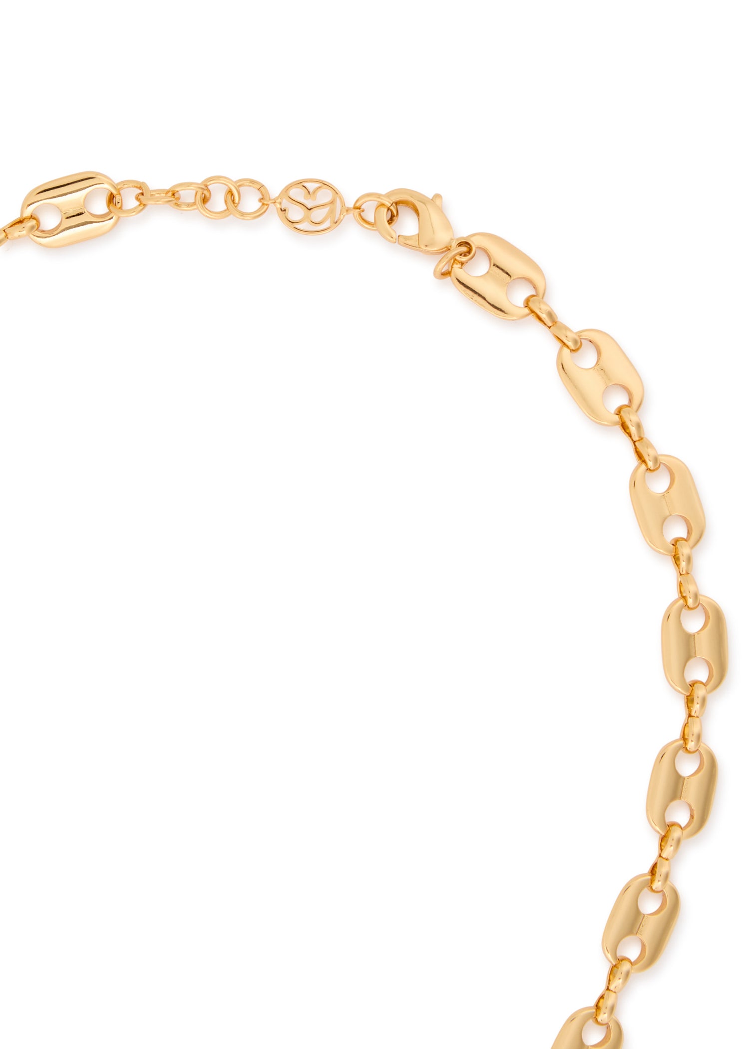 This handmade necklace is crafted from 18kt gold-plated brass with a mariner link pendant. The adjustable length is 42cm-45cm, and it is secured with an adjustable lobster clasp fastening.
