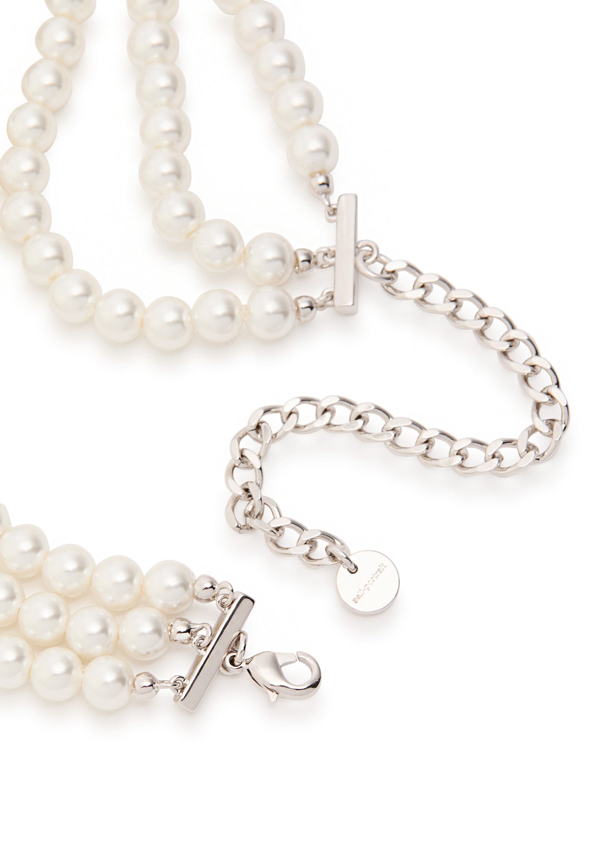 This Crystal-embellished faux pearl choker by Self Portrait is a statement of modern romanticism. A dramatic, multi-layered design of luminous faux pearls creates a bold, luxurious silhouette, while the central crystal-embellished flower pendant adds a touch of intricate, vintage-inspired elegance. This choker is a captivating piece that brings a sense of refined drama and timeless beauty to any look.