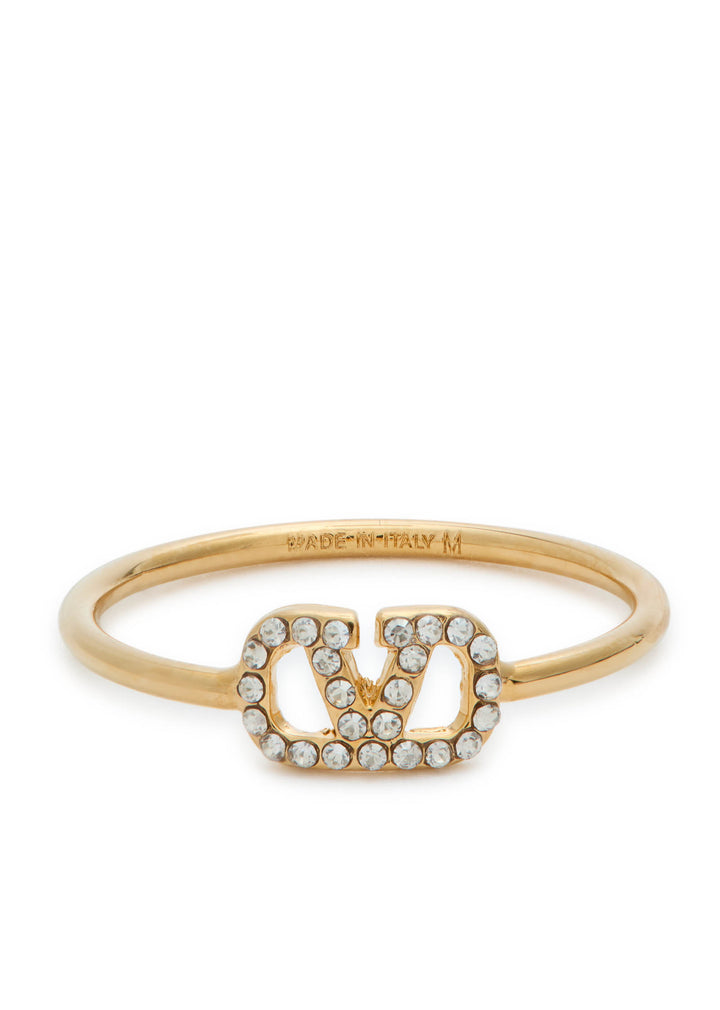 This Valentino Garavani metal ring features a crystal-embellished VLogo design. The band width is 0.1cm, and the face measures 0.9cm x 0.5cm.