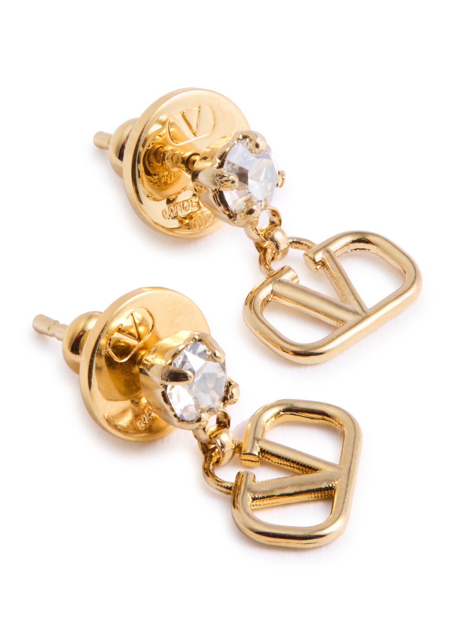 These Valentino Garavani drop earrings feature a Vlogo charm and Swarovski crystal embellishment. They have a post fastening for pierced ears, with a drop of 1.5cm.