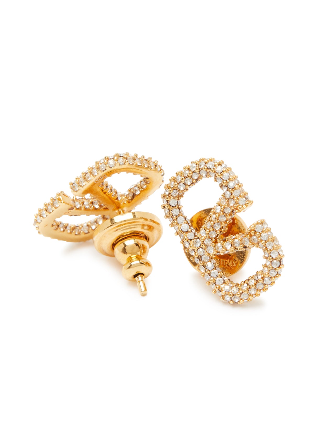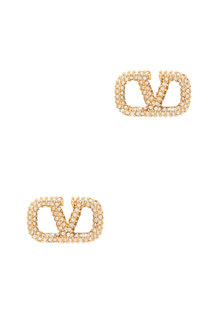 These VLogo crystal-embellished stud earrings by Valentino Garavani are a testament to sophisticated simplicity. The iconic VLogo design is beautifully encrusted with brilliant Swarovski crystals, creating a luxurious and sparkling effect. These studs are a timeless and elegant choice, perfect for a subtle touch of daily glamour.