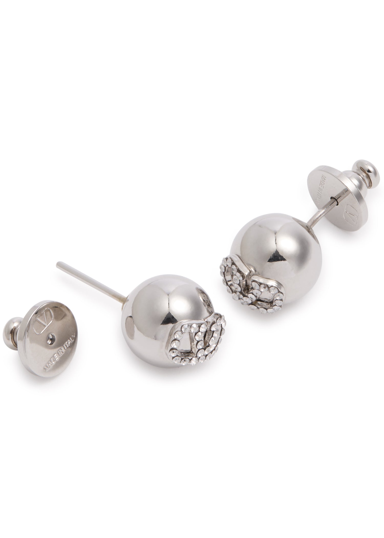 These Vlogo crystal-embellished stud earrings by Valentino Garavani are a brilliant and timeless accessory. The signature VLogo plaque is beautifully encrusted with sparkling crystals, creating a piece that is both iconic and radiantly glamorous. They are an elegant and versatile choice, perfect for adding a subtle touch of luxury to your everyday style.