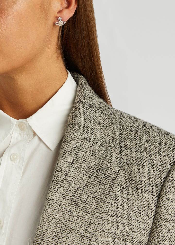 These Olympia embellished orb stud earrings by Vivienne Westwood are a stunning and romantic accessory. The signature Orb is beautifully accented with both a luminous faux pearl and a brilliant crystal, creating a piece that is both classic and sparkling. These studs are a perfect blend of elegance and iconic design.