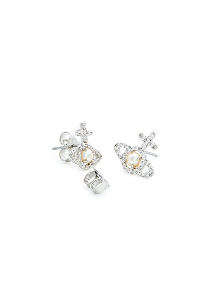 These Vivienne Westwood stud earrings feature a signature orb design with faux pearl and crystal embellishments. They have a butterfly fastening for pierced ears, and measure 1.5cm x 1.5cm.
