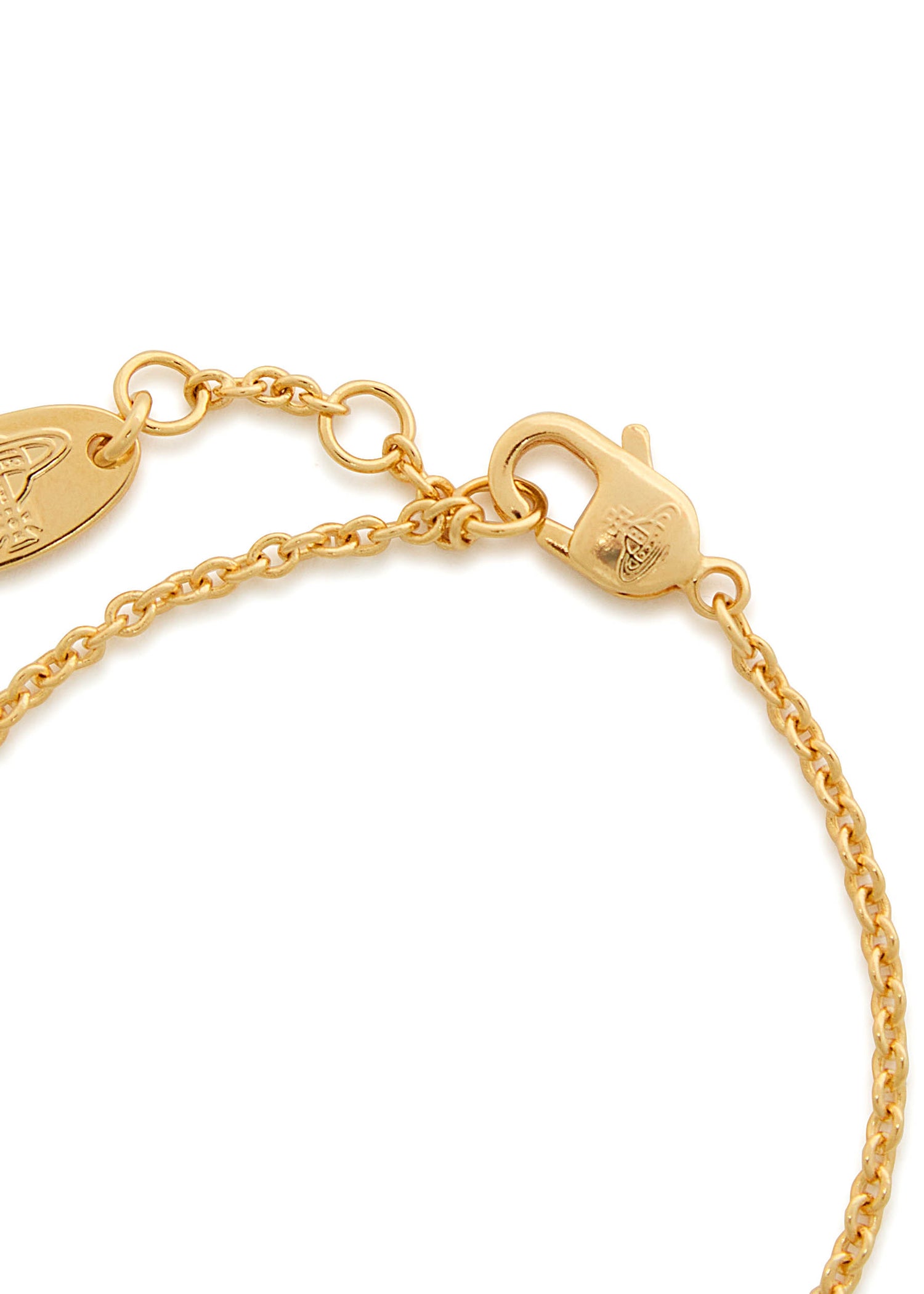This hand-finished Vivienne Westwood metal bracelet features a signature orb pendant with crystal embellishments. It has an adjustable lobster-clasp fastening and a length of 17cm.