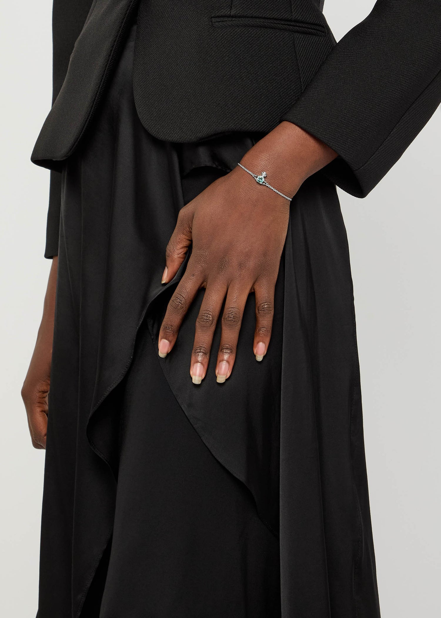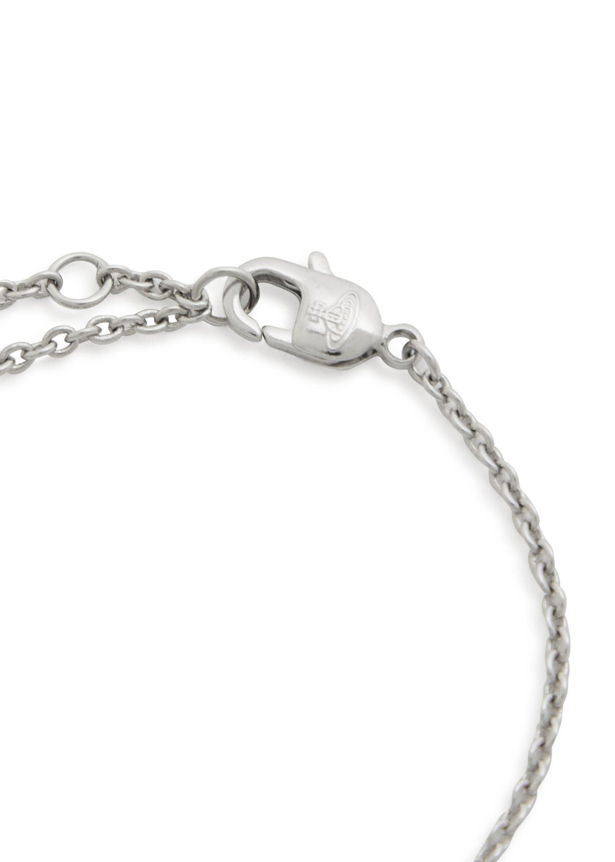 This hand-finished Vivienne Westwood metal bracelet features a signature orb charm with crystal embellishments. It has an adjustable lobster-clasp fastening and a length of 17cm.