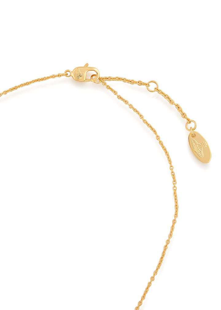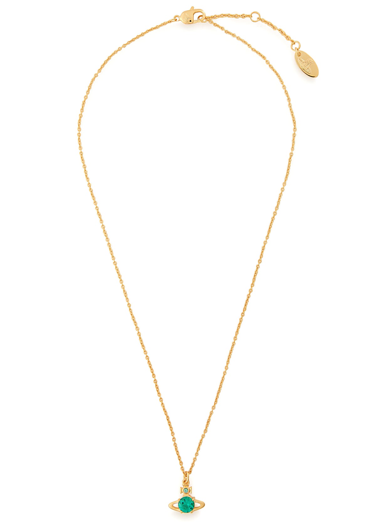 This hand-finished Vivienne Westwood metal necklace features a signature orb pendant with crystal embellishments. It has an adjustable lobster-clasp fastening and a length of 42.5cm.