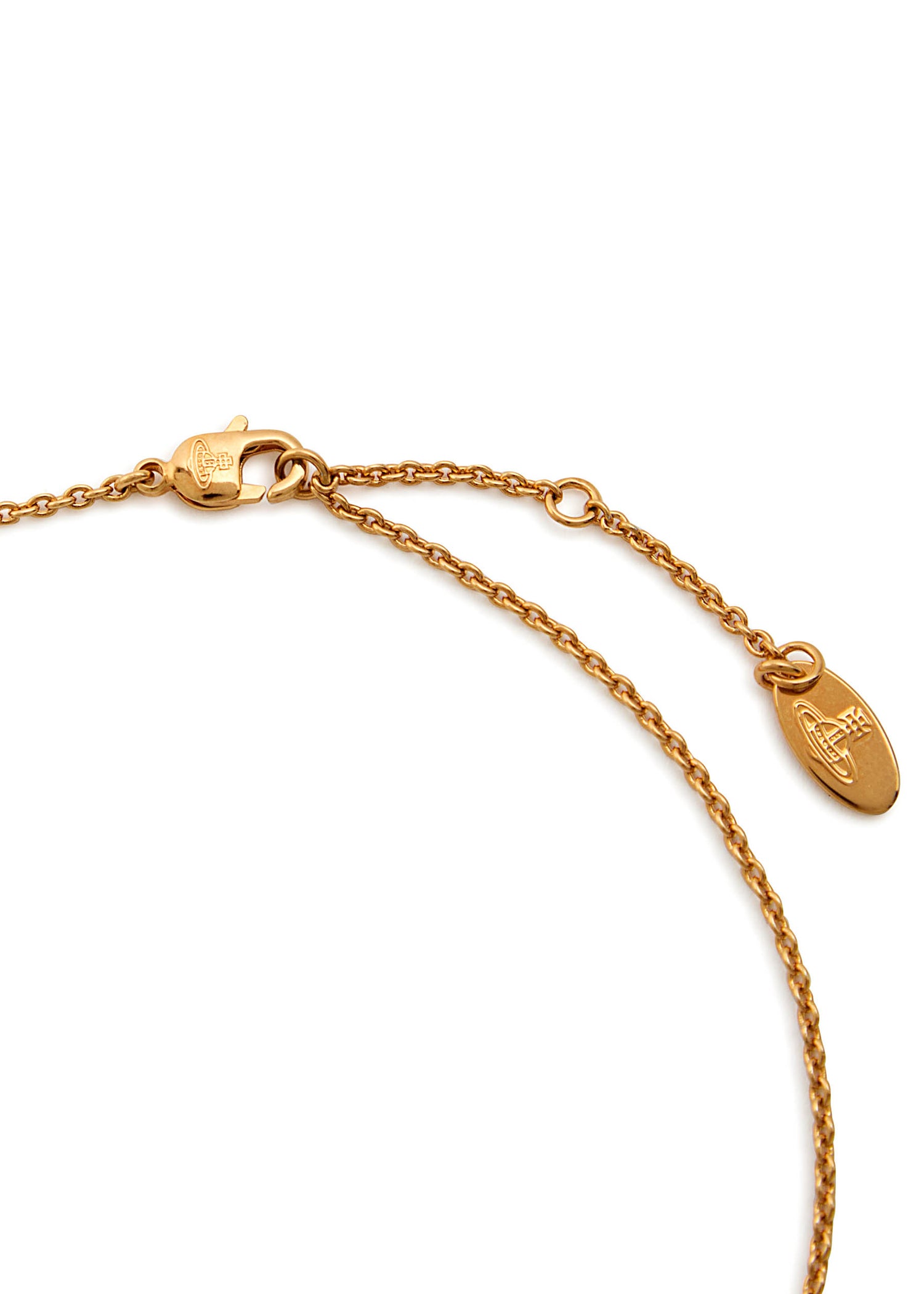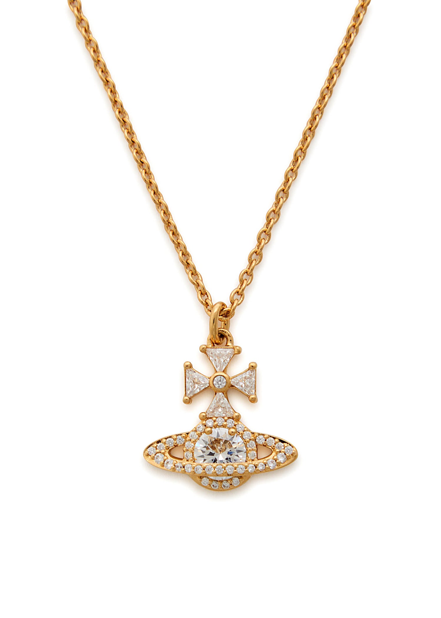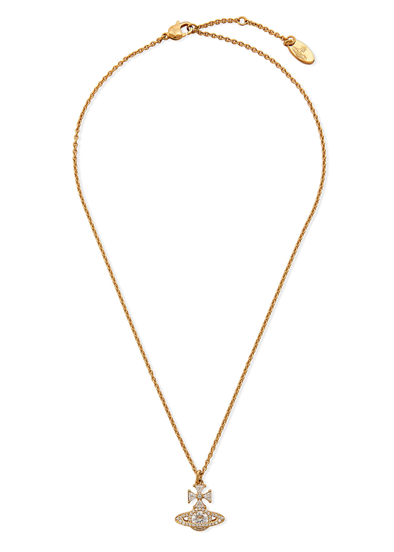 This hand-finished Vivienne Westwood metal necklace features a signature orb design with crystal embellishments. It has an adjustable lobster-clasp fastening and a length of 42.5cm.