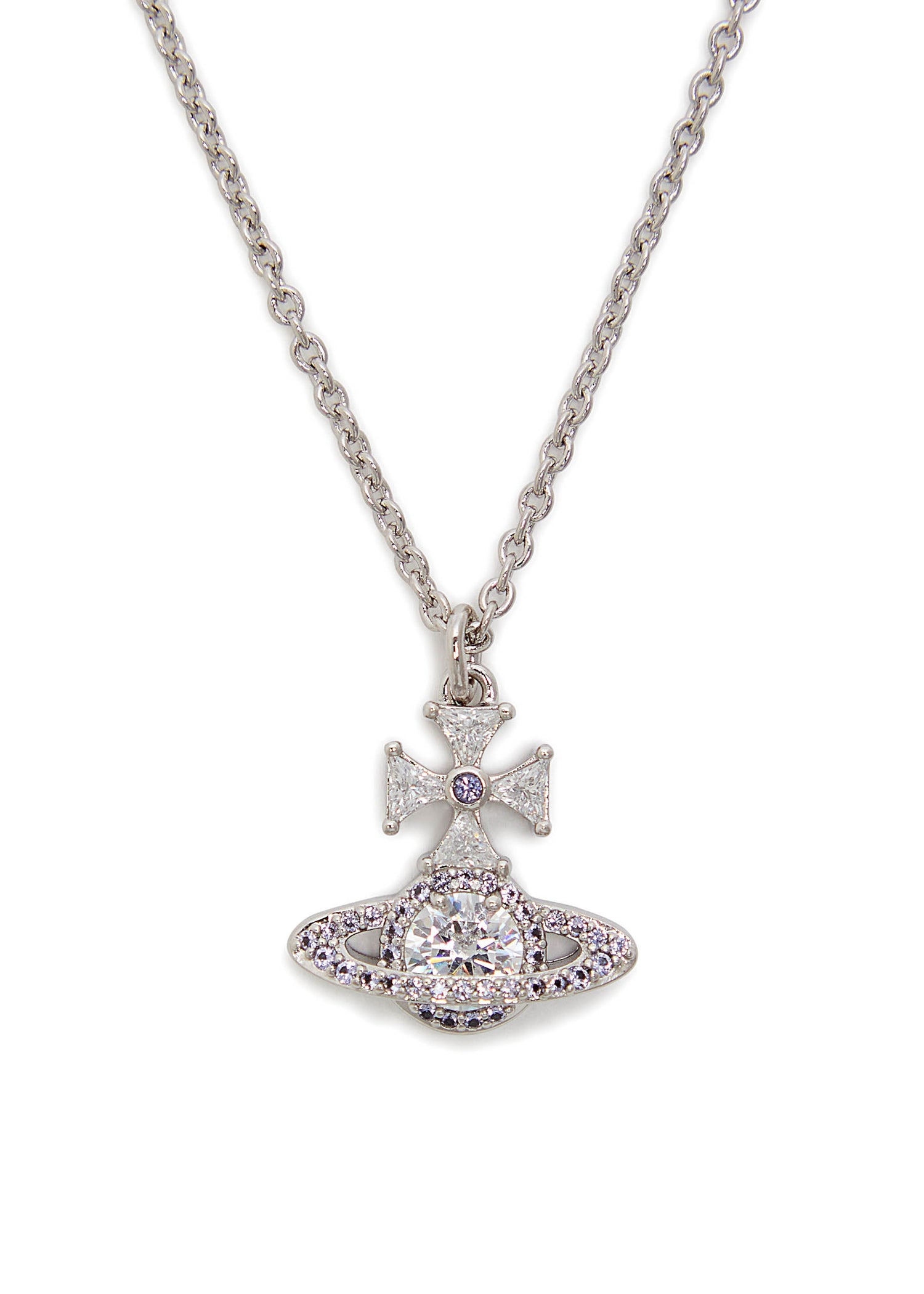 This hand-finished Vivienne Westwood metal necklace features a signature orb design with crystal embellishments. It has an adjustable lobster-clasp fastening and a length of 42.5cm.