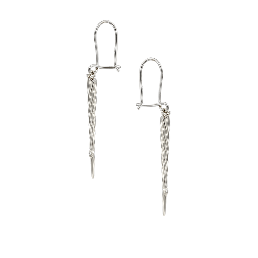Crafted from 14k white gold, these earrings are crusted with diamonds.