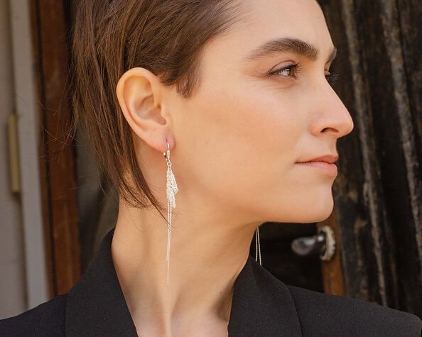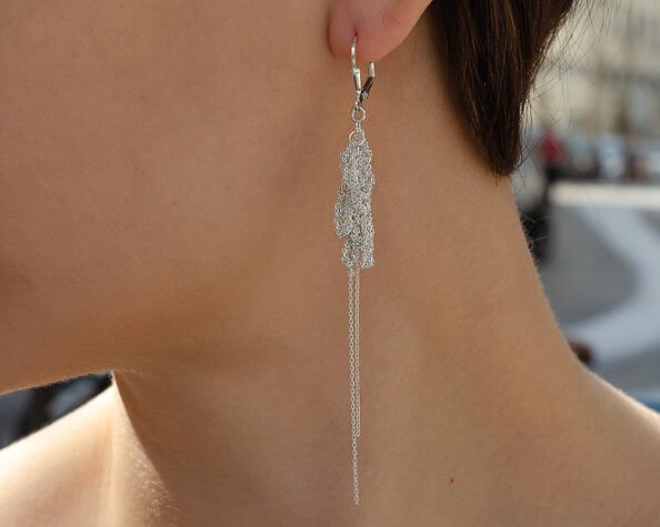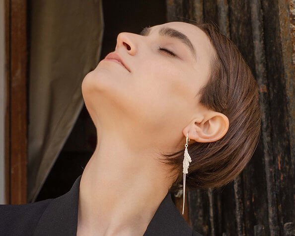 These delicate lightweight and minimalist earrings have a classic and chic look. The perfect pair for everyday, full of movement and sophisticated elegance. Like all of Mora's designs, they are one-of-a-kind, hand-knitted in crochet artwork by Mora.