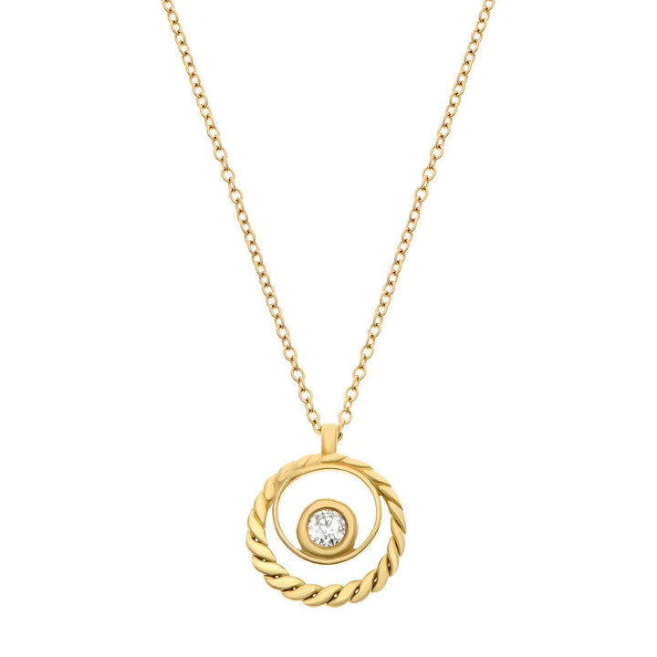 An expression of choreographed movement and grace, the Concentric necklace is a timeless jewelry piece inspired by planets orbiting the sun. The white diamond at the center of the pendant seems suspended in time and space, orchestrating the gentle movement of the handcrafted 18K gold circles around it. The simplicity of this classic piece makes it an easy choice for everyday wear.