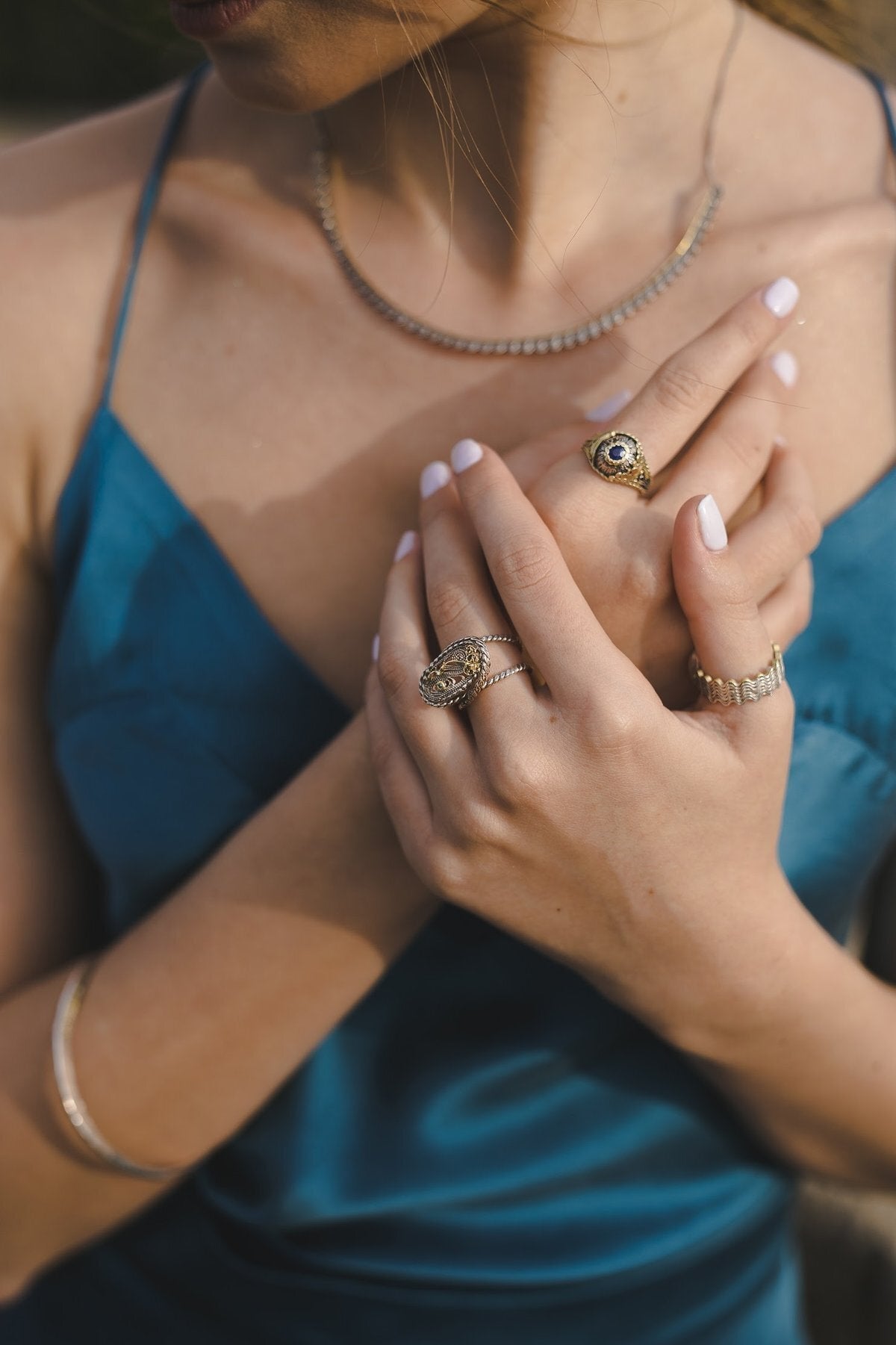 Sharón Chandally Pedrini's work carries tradition forward, innovating under the influence of generations. She explores the tension between asymmetry and balance, simplicity and chaos, and synthesizes her roots in Yemenite silversmithing with a uniquely modern sensibility. The result is an unfolding body of engaging work that looks to the future and nods to the past, celebrating the dance between old and new with grace, glamour, and a touch of grit. Luxury for the everyday.