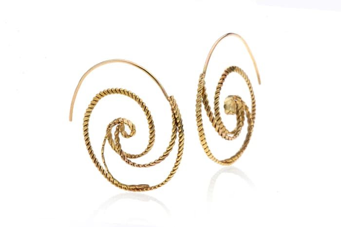 Inspired by nature's most famous instinctive form, Fibonacci's spiral, the Ammonite earrings reflect the shape of these fossilized creatures. These bold earrings make a statement by incorporating layers of twisted 18k gold wire that accentuate the volume and movement of the three-dimensional swirls.