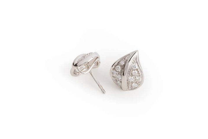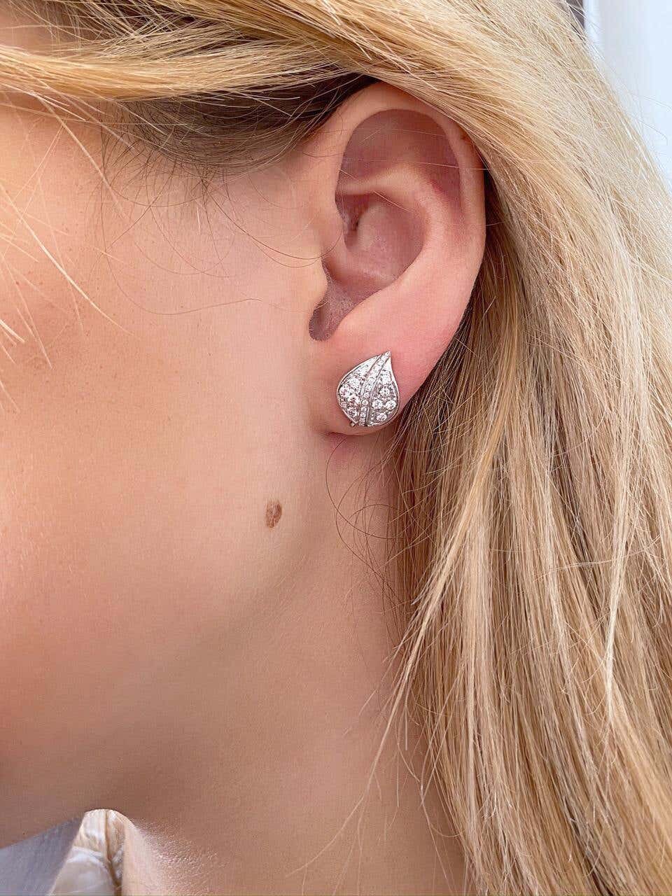These elegant earrings are perfect for the winter time due to their leaves shape. They're handcrafted in 18k white gold and adorned with white diamonds. Diamonds bring love, clarity and light into our lives.