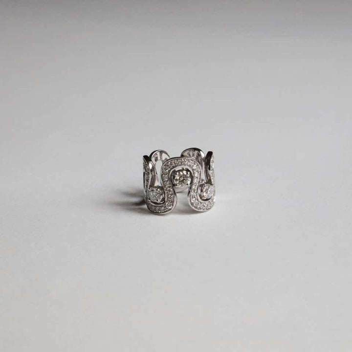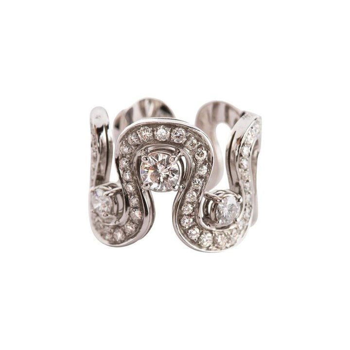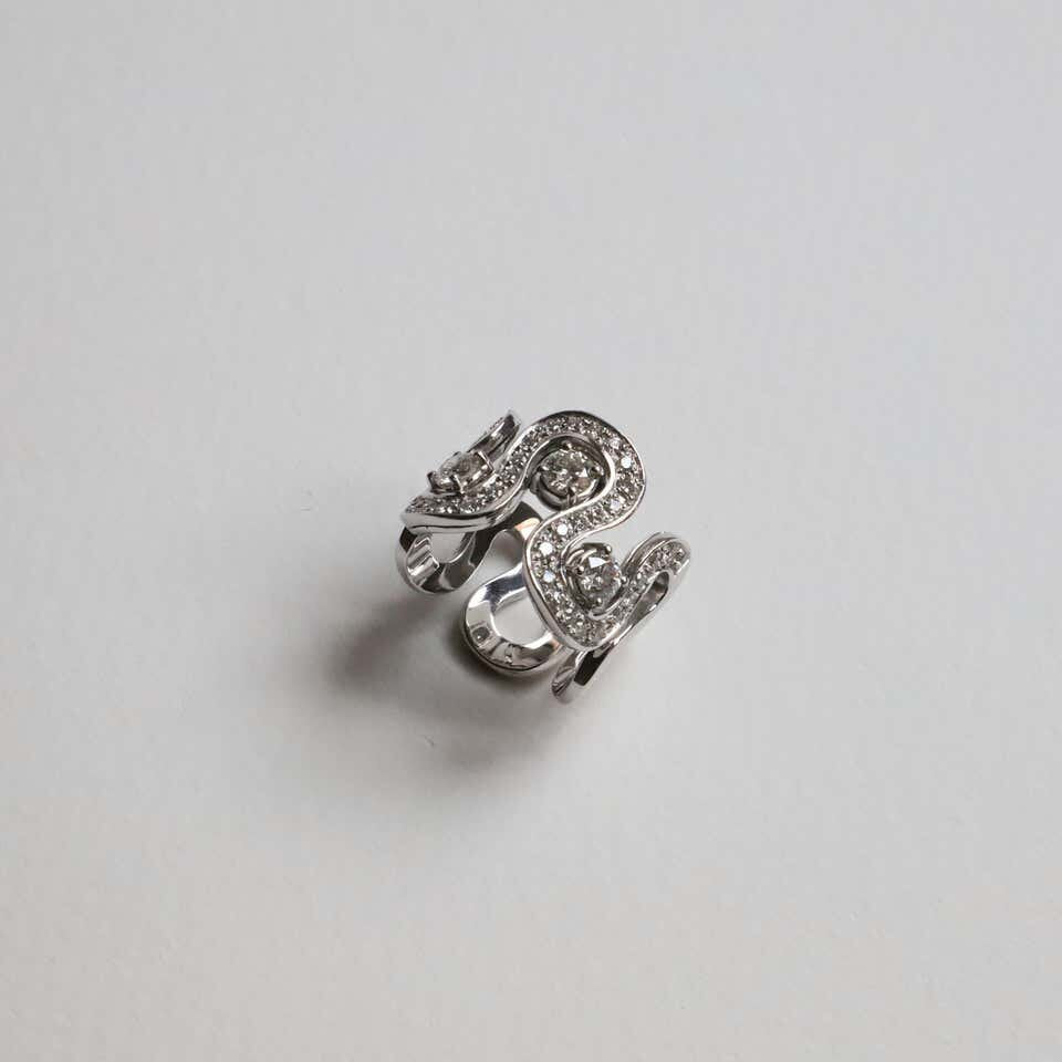 From Rossella Ugolini's Silhouette collection, inspired by the idea of dance. This amazing ring is handcrafted with 18k white gold and embellished with 1.54 ct white diamonds.Diamonds bring love, clarity and light into our lives.