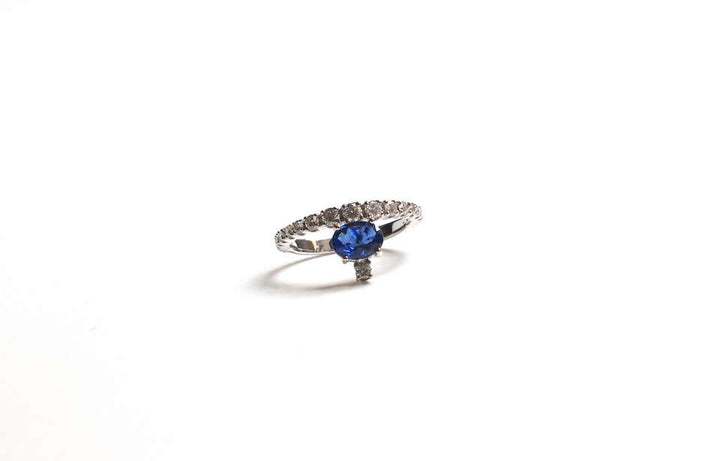 18k white gold with 1.2 ct sapphires and 0.5 ct white diamonds.