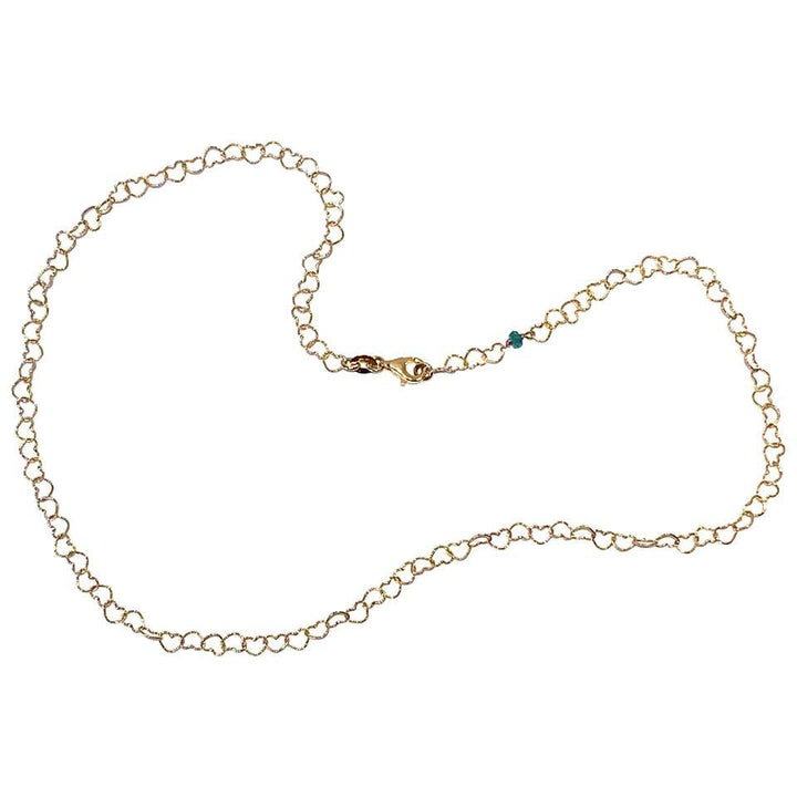 A nice 18k gold necklace embellished with a deep 0.5 ct green emerald that fits every outfit due to its simplicity. The chain is linked by hand and slightly hammered to fit the perfect necklace shape.Emerald is known as the “stone of successful love'. It brings loyalty, enhances unconditional love and promotes friendship.