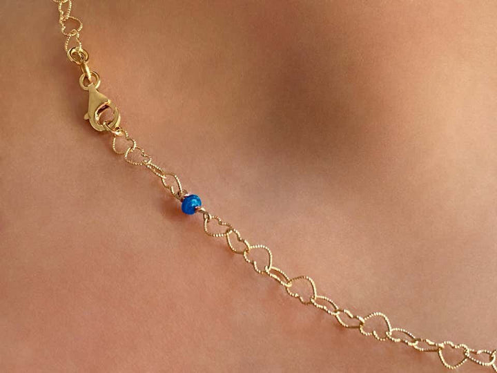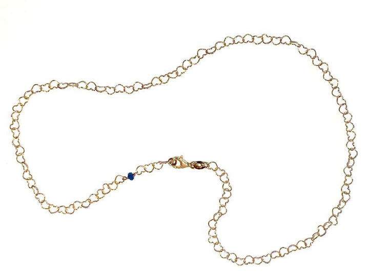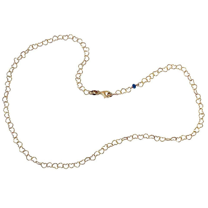 A nice 18k gold necklace embellished with an intense 0.51 ct blue sapphire that fits every outfit due to its simplicity. The chain is linked by hand and slightly hammered to fit the perfect necklace shape. Sapphire is said to be the wisdom stone, stimulating concentration, enhancing creativity and promoting purity and depth of thought. It is believed to focus and calm the mind.