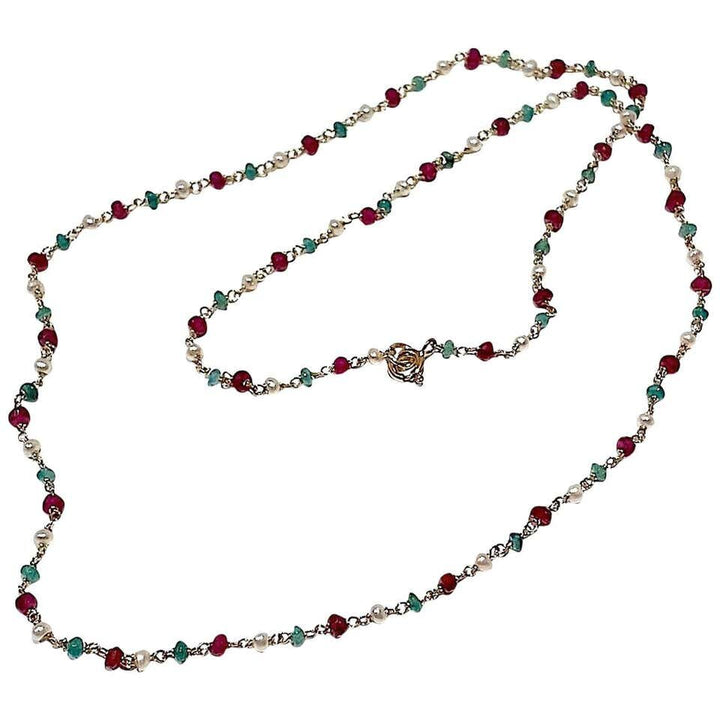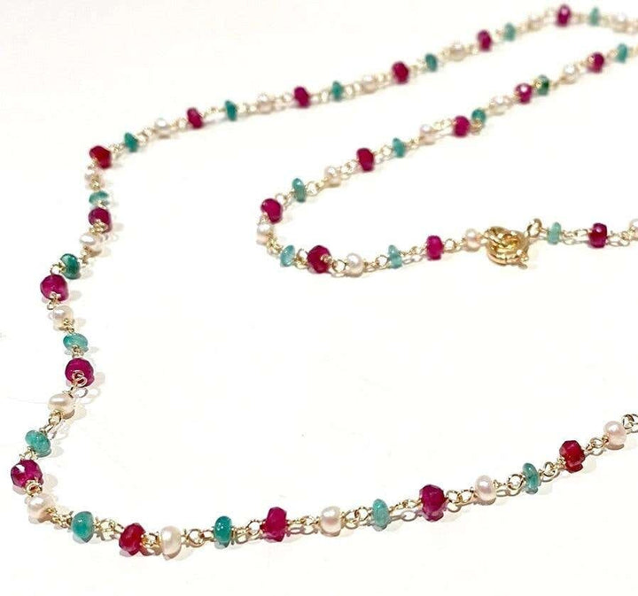 Emerald and Garnet Beaded Necklace
