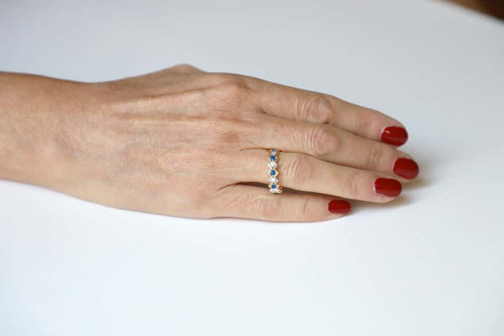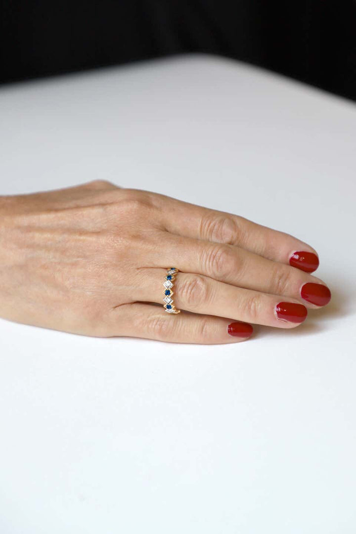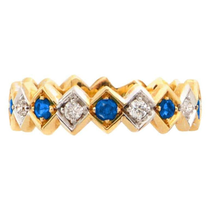 18k yellow and white gold with 0.08 ct white diamonds and 0.16 ct sapphires.