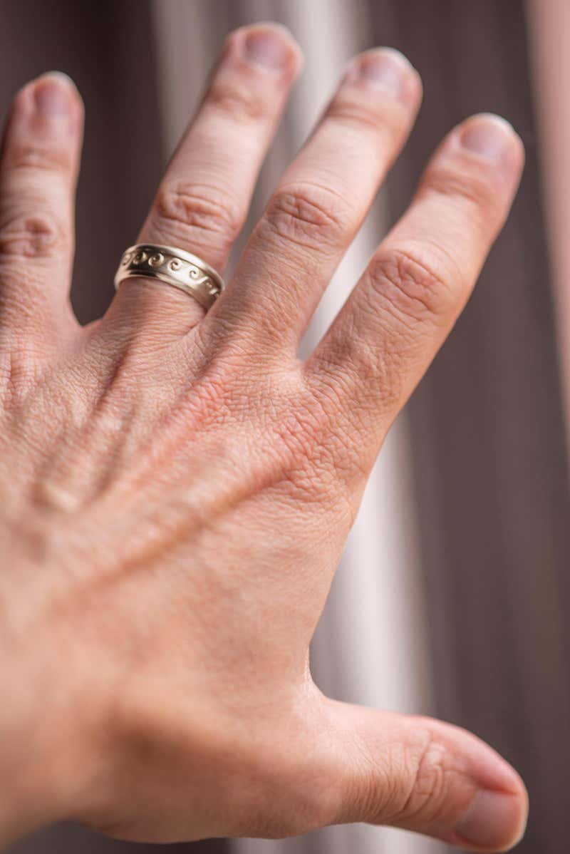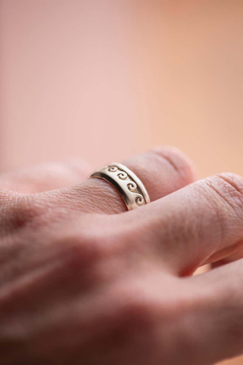Here is an amazing design, handcrafted in 18k white gold and embellished with an embossed wave. It can be worn for different purposes: as a fashionable ring that fits well with everyday outfits, as a special engagement ring or as a sophisticated wedding ring. The continuous wave is an element that really augurs well because it symbolizes infinity, love and life.
