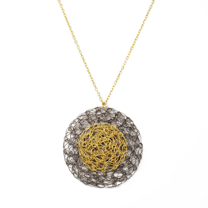 Black Rhodium and Gold Disc Pendant