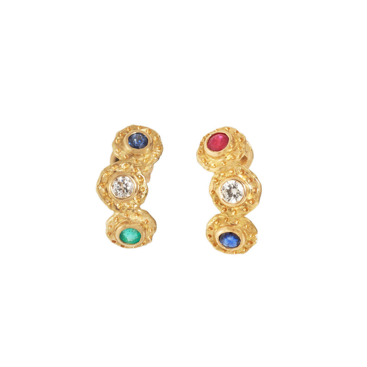 19.25k yellow gold with 0.33 ct diamonds - H colour, VS1 clarity, 0.22 ct emerald, 0.66 ct sapphires, 0.3 ct ruby.