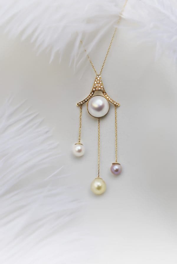 19.25k yellow gold with 0.93 ct diamonds and 4 pearls.