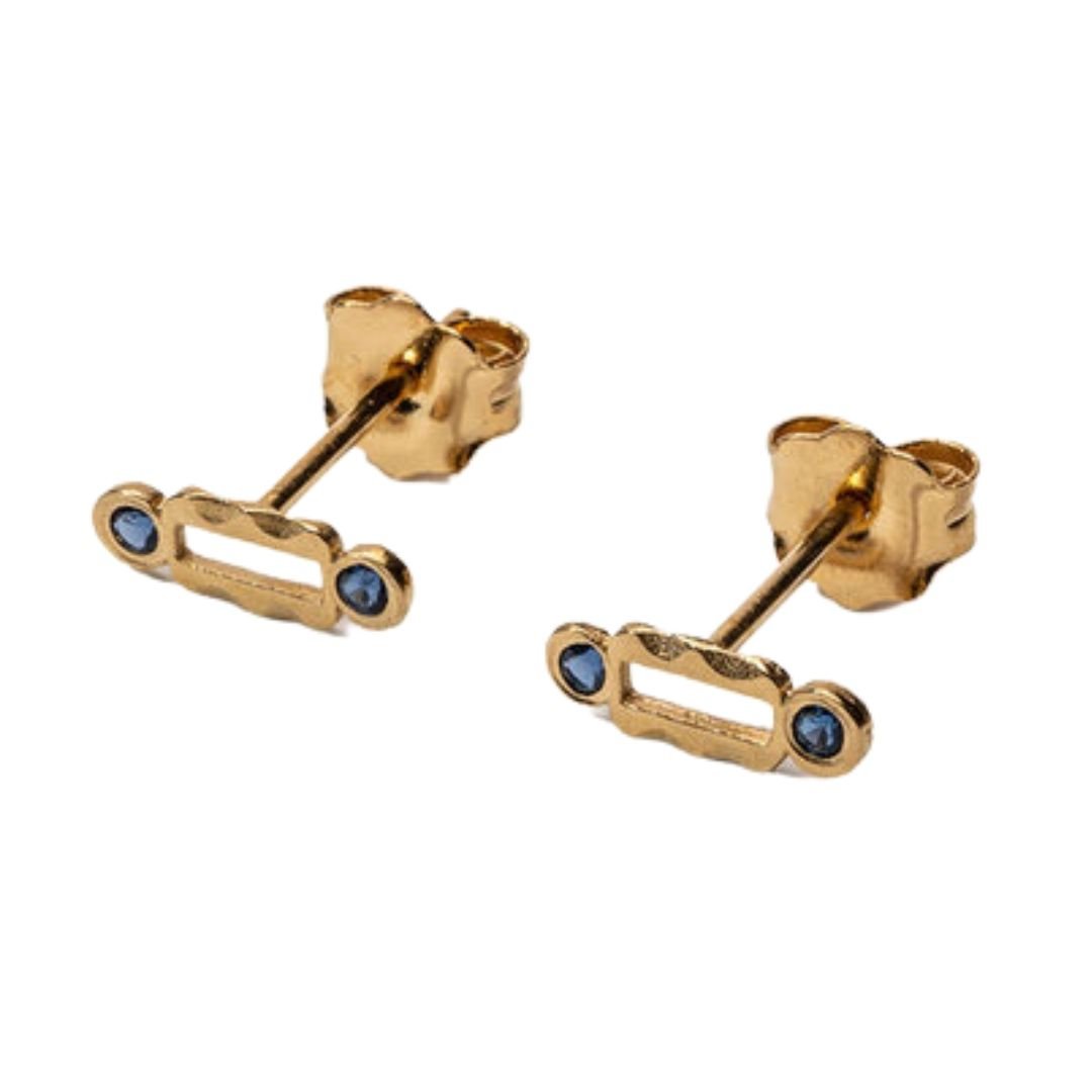 24k gold-plated 925 sterling silver with blue zirconia stones.Dimensions: 1 x 0.4 x 1.3 cm