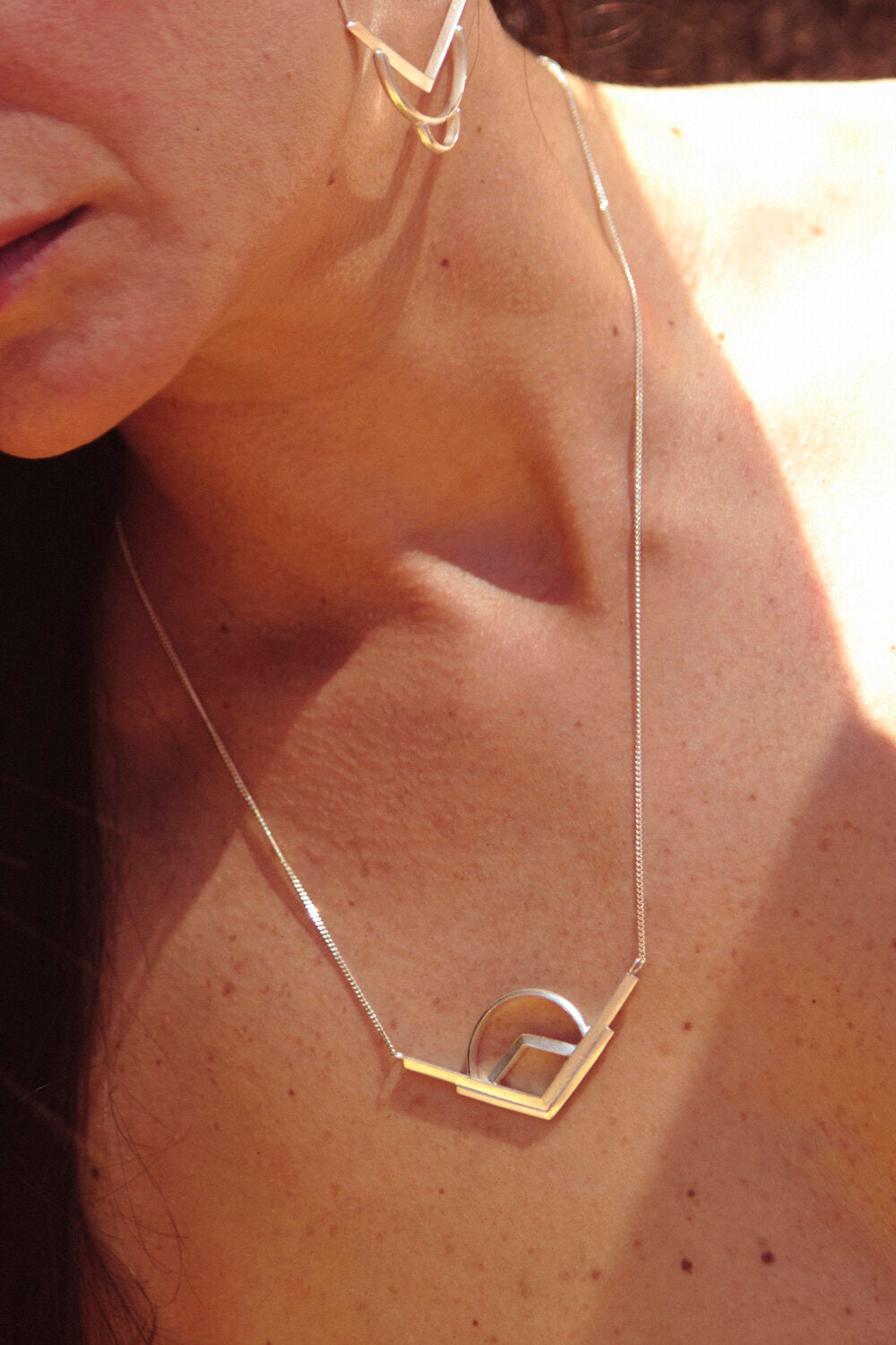 Joana Mota Capitão's RV collection reflects the balance between geometric shapes and the tribal influence emerging from the artist it is inspired by. RV is Rubem Valentim, Bahia-born painter and sculptor who learned by doing, testing, experimenting. Twists and turns in a solemn, delicate collection, a true statement of sophistication and craftsmanship.