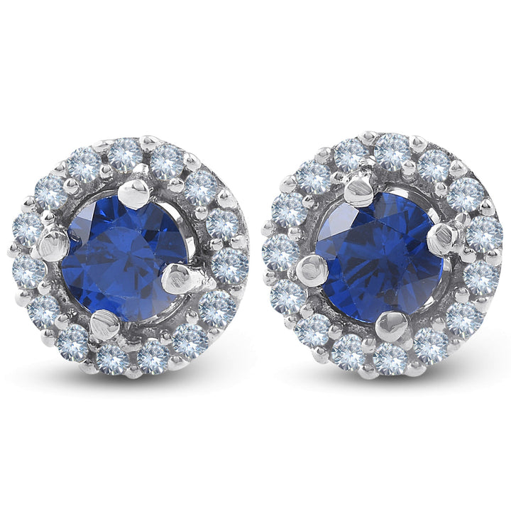 1/4 Ct Halo Diamond & Blue Sapphire Studs 10K White Gold