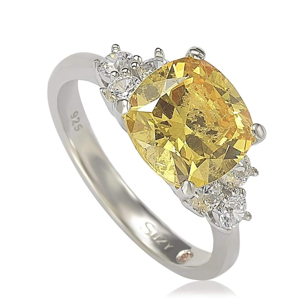 Suzy Levian Sterling Silver Yellow Cubic Zirconia Engagement Ring