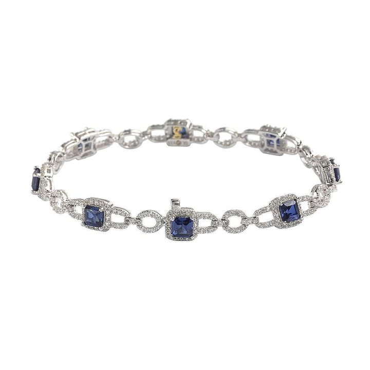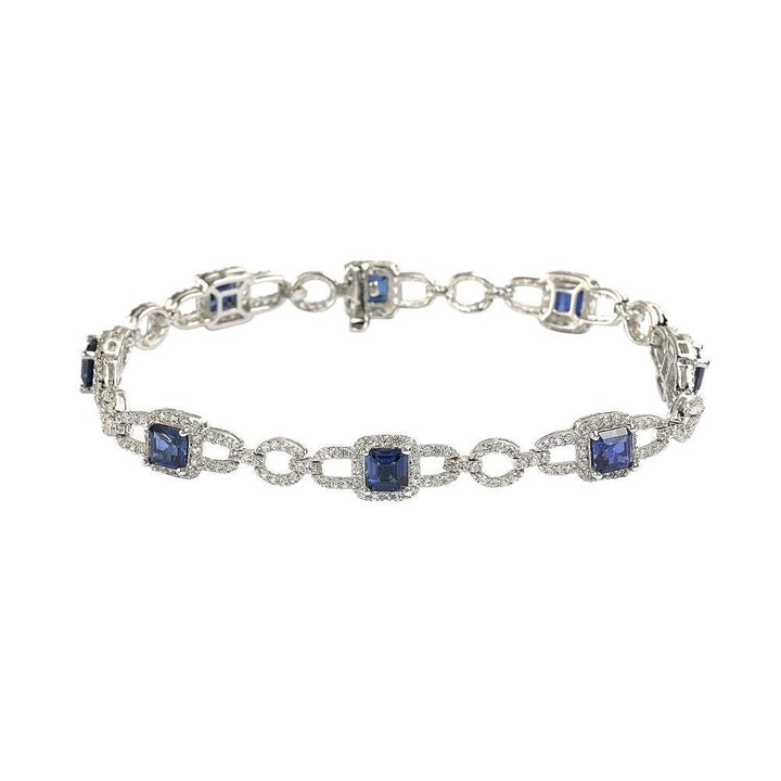Suzy Levian Sterling Silver Asscher Cut Sapphire & Diamond Accent Tennis Bracelet