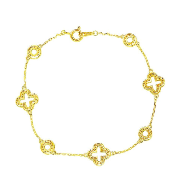 Suzy Levian Golden Sterling Silver White Cubic Zirconia Clover and Circles Bracelet