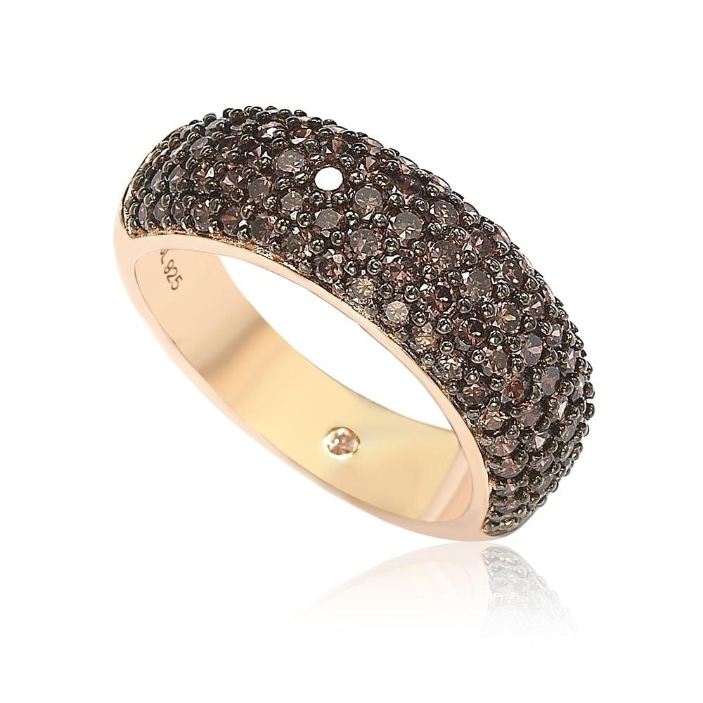 Suzy Levian Brown Cubic Zirconia in Rose Sterling Silver Thick Pave Band