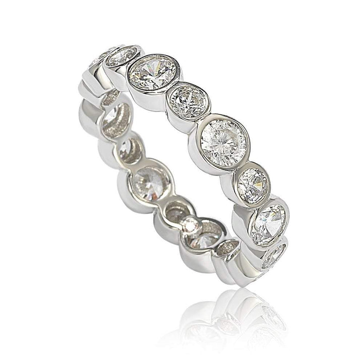 Suzy Levian Sterling Silver Cubic Zirconia Multi Circle Bezel Set Eternity Band