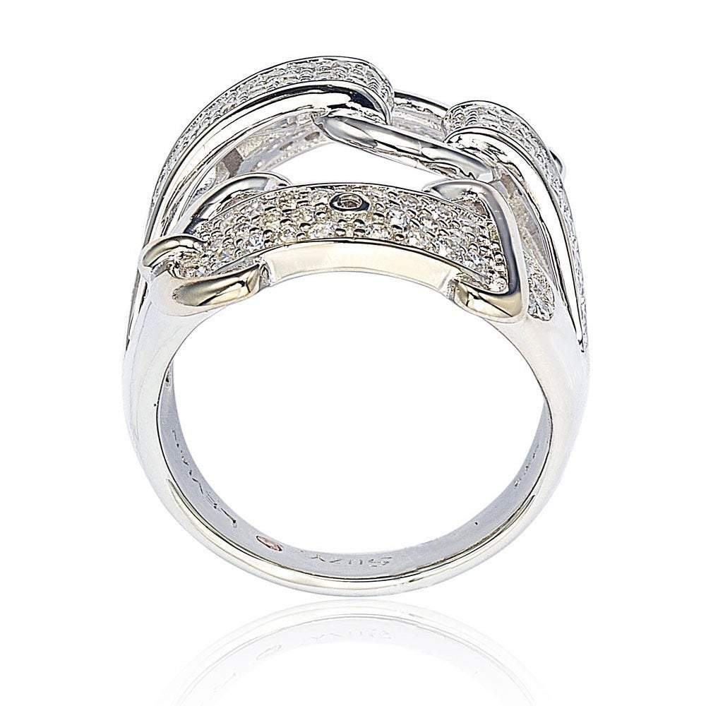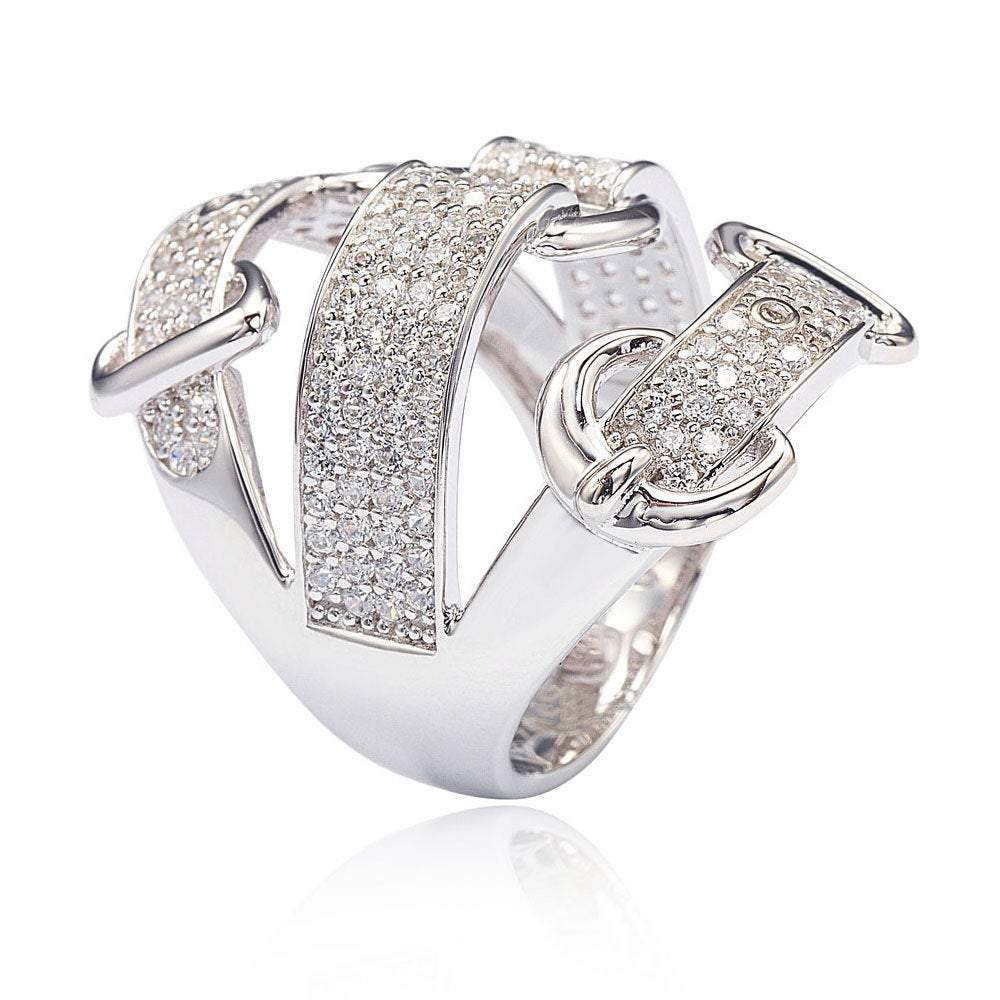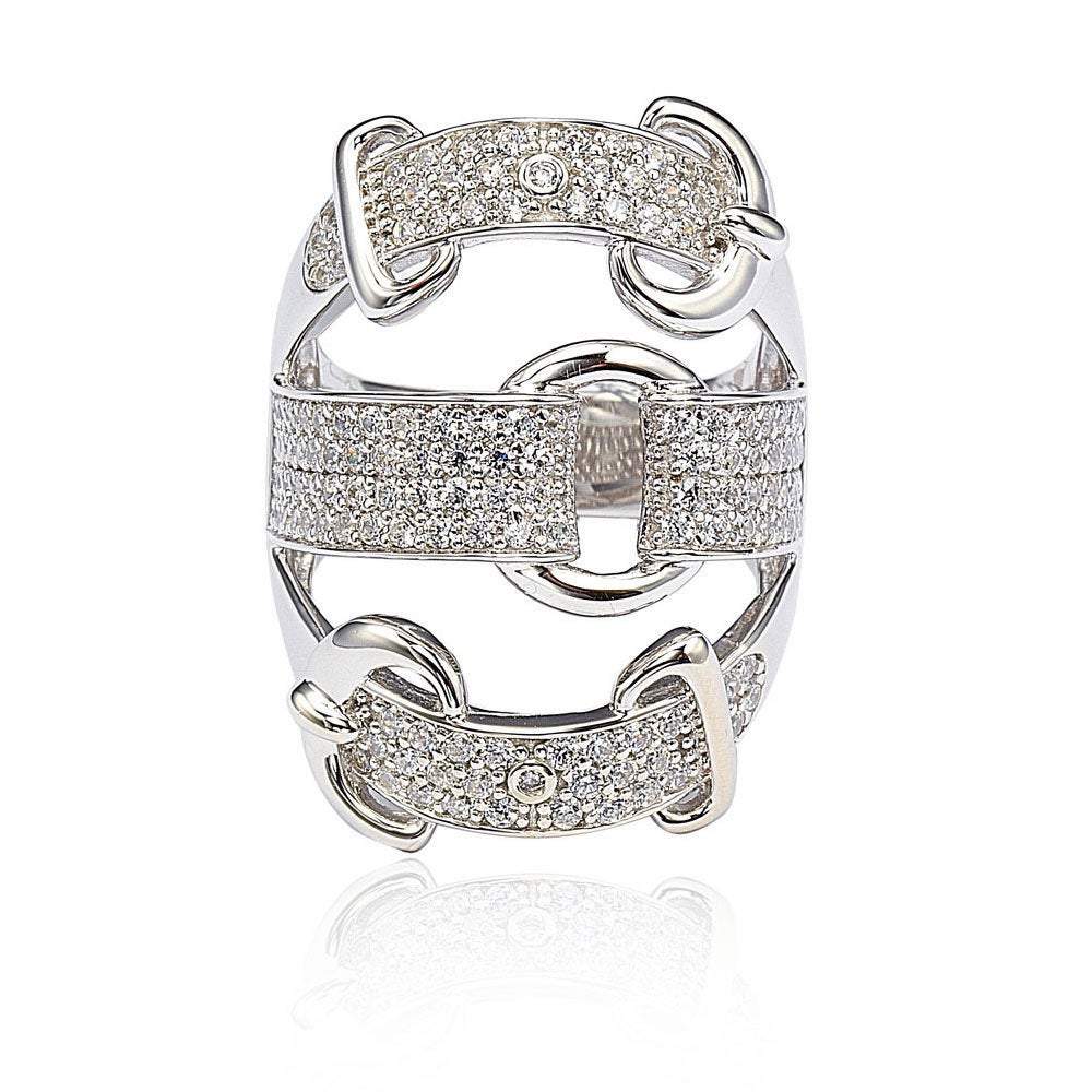 Suzy Levian Sterling Silver Cubic Zirconia White Buckle Ring