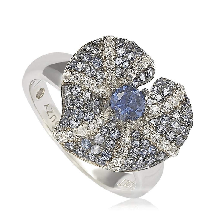 Suzy Levian Sterling Silver Sapphire and Diamond Accent Whimsical Heart Ring - Blue - 9