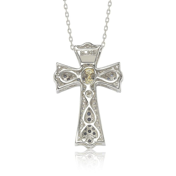 Suzy Levian Sterling Silver Sapphire and Diamond Accent Cross Pendant