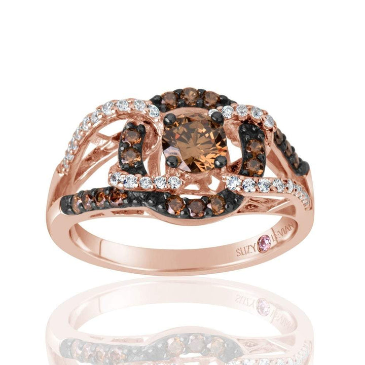 Suzy Levian Rose Sterling Silver Brown Cubic Zirconia Gladiator Ring