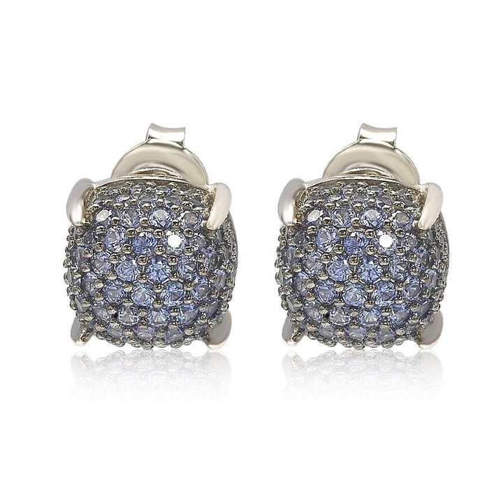 Suzy Levian Sterling Silver Sapphire & Diamond Accent Pave Cluster Earrings