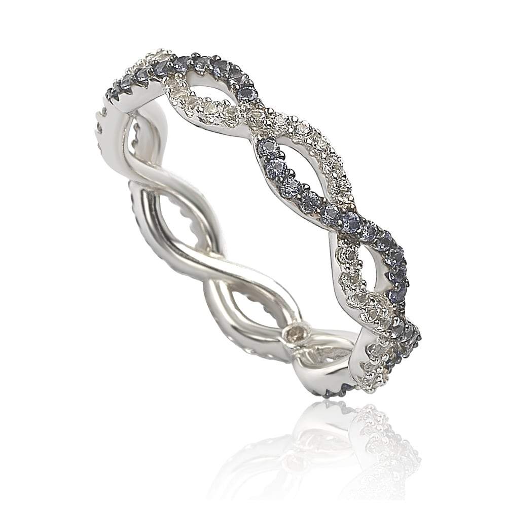 This Suzy Levian Sterling Silver Sapphire & Diamond Accent Crossover Band is a stunning interpretation of elegance and versatility. Featuring two intertwining rows of round-cut blue sapphires and created white sapphires, this pave-set twisted design offers a sophisticated yet modern aesthetic. Part of the ‘Petite Perfects’ collection, this band is designed for those who prefer a slim, delicate look that still makes a statement. A hidden brown diamond in the shank represents Suzy Levian’s message of empowerment.