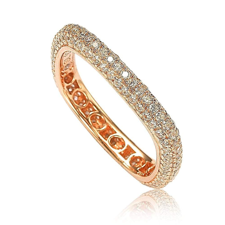Suzy Levian Rosed Sterling Silver Cubic Zirconia Modern Pave Square Eternity Band - Pink