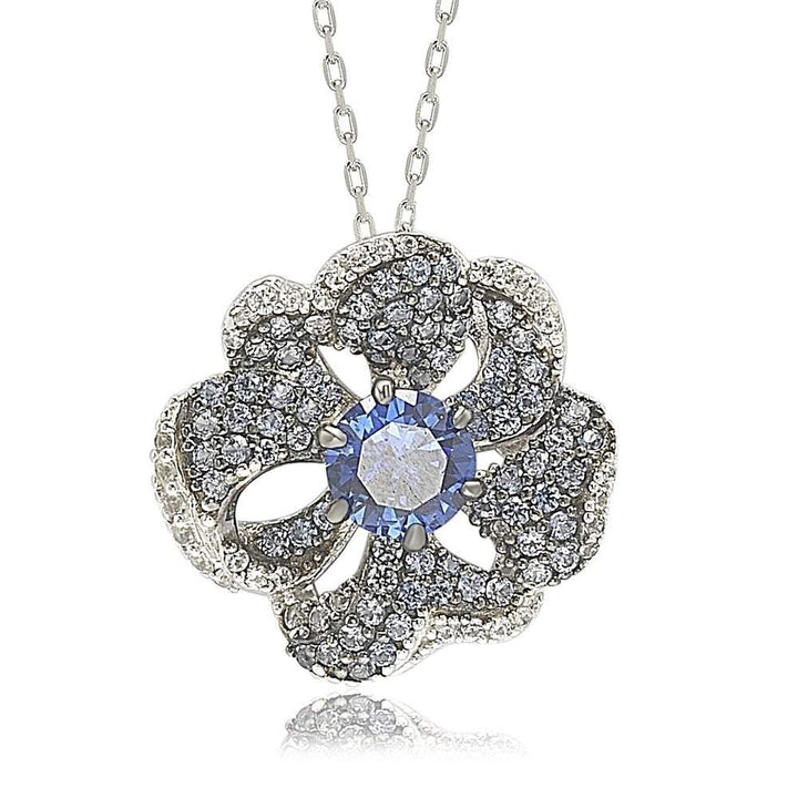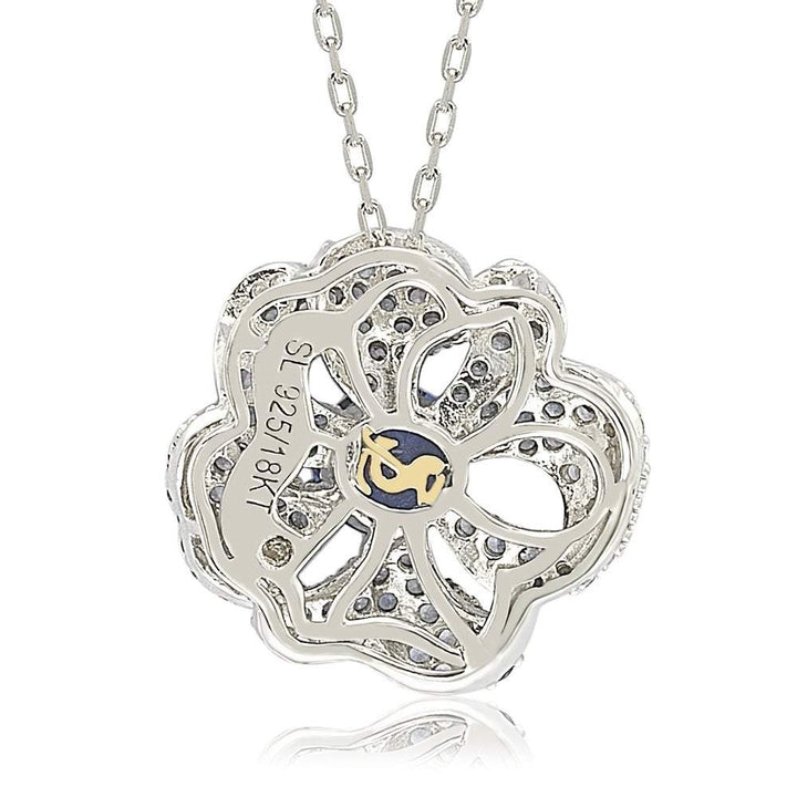 Suzy Levian Sterling Silver Sapphire and Diamond Accent Whimsical Flower Pendant Necklace