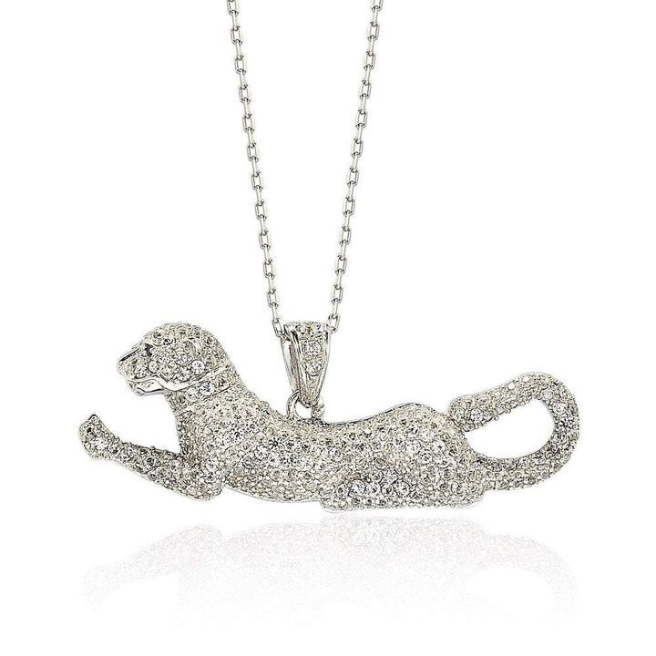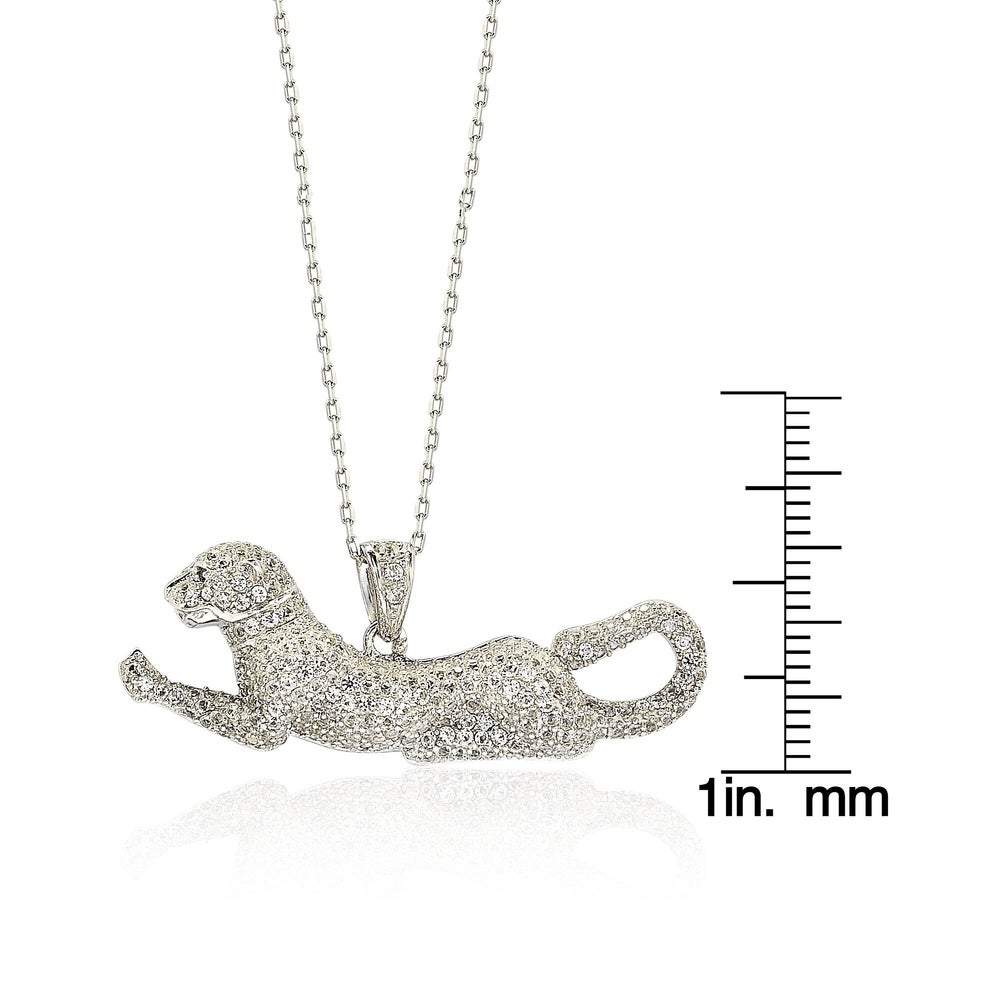 Suzy Levian Sterling Silver White Sapphire and Diamond Accent Prowling Tiger Pendant